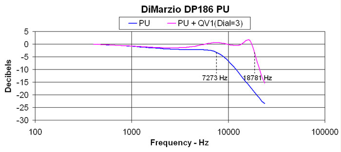 below shows the gain of the QV1 by itself, for three different dial settings.